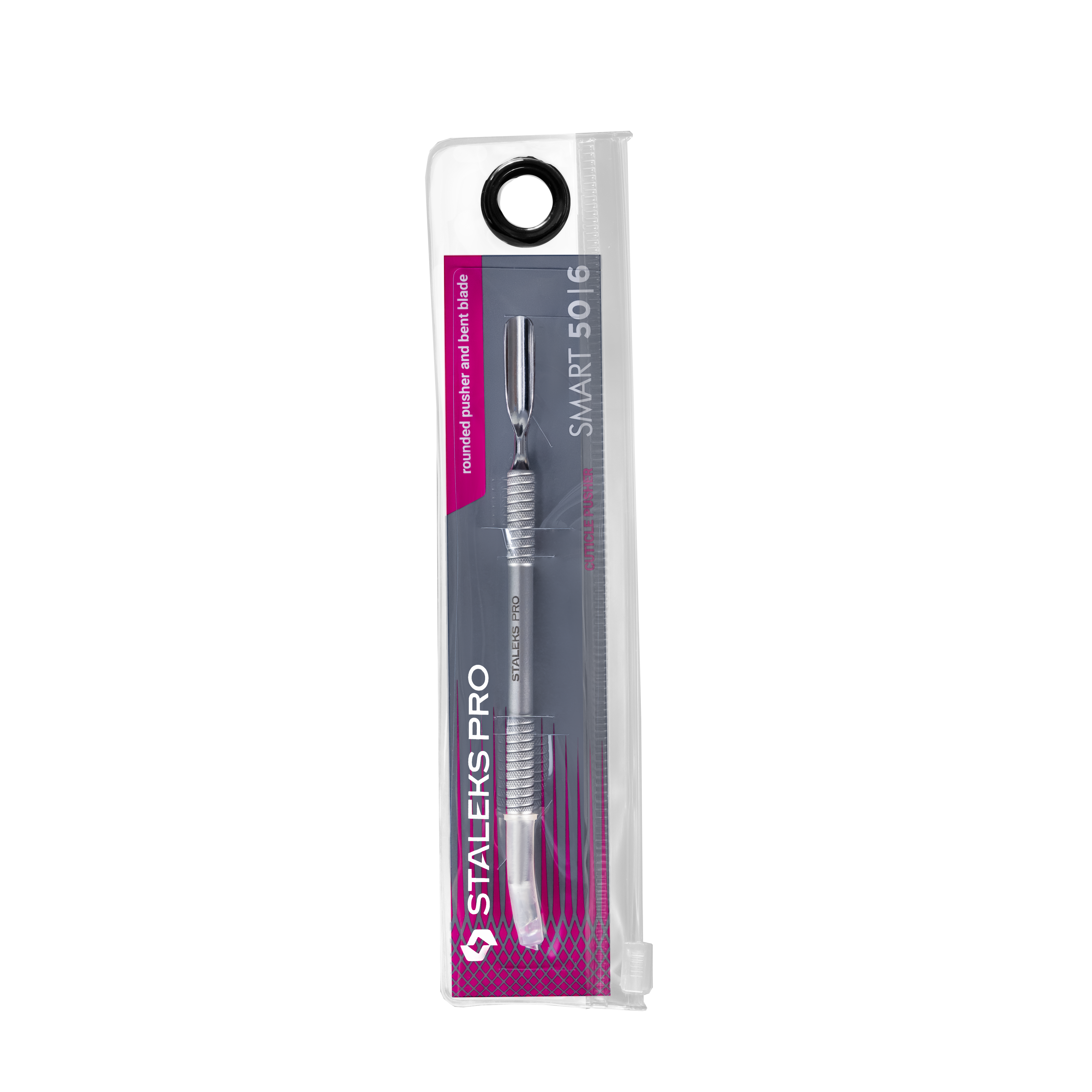 Staleks PRO opracował dwustronne kopytko do manicure Smart 50 Type 6 PS-50/6 z dwoma częściami roboczymi: zaokrąglonym popychaczem i zakrzywionym ostrzem, specjalnie dla łatwego uzyskania idealnego efektu . Łopatka ma idealną wagę i średnicę, która nie męczy dłoni nawet przy dłuższej pracy.