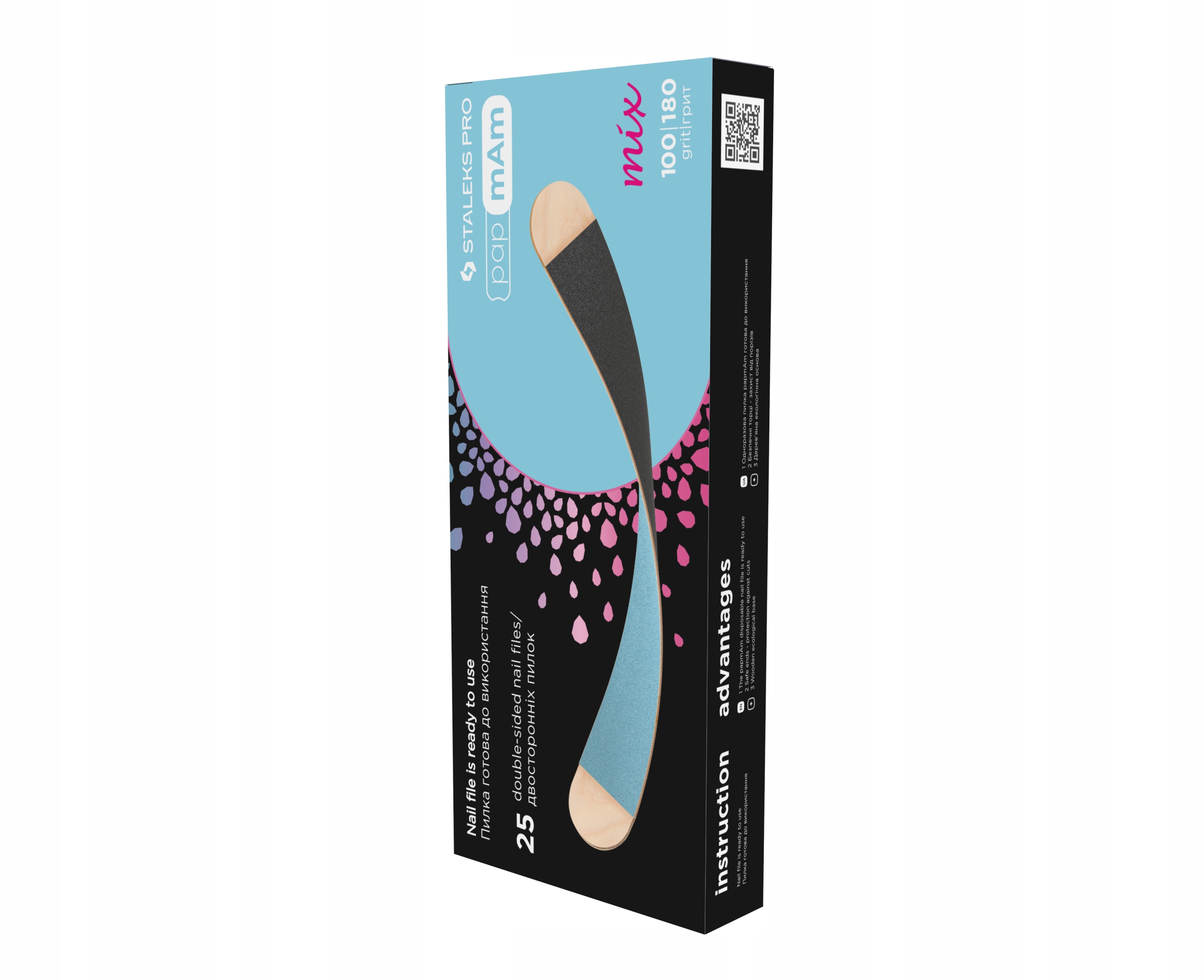 - Innowacyjne pilniki jednorazowe Papmam Mix z wysokiej jakości ścierniwem zapewniają wysokiej jakości opiłowanie płytki paznokcia:czarne ścierniwo – niższy ziarnistość (do prac podstawowych) niebieskie ścierniwo – wyższe ziarnistość (do prac wykończeniowych)